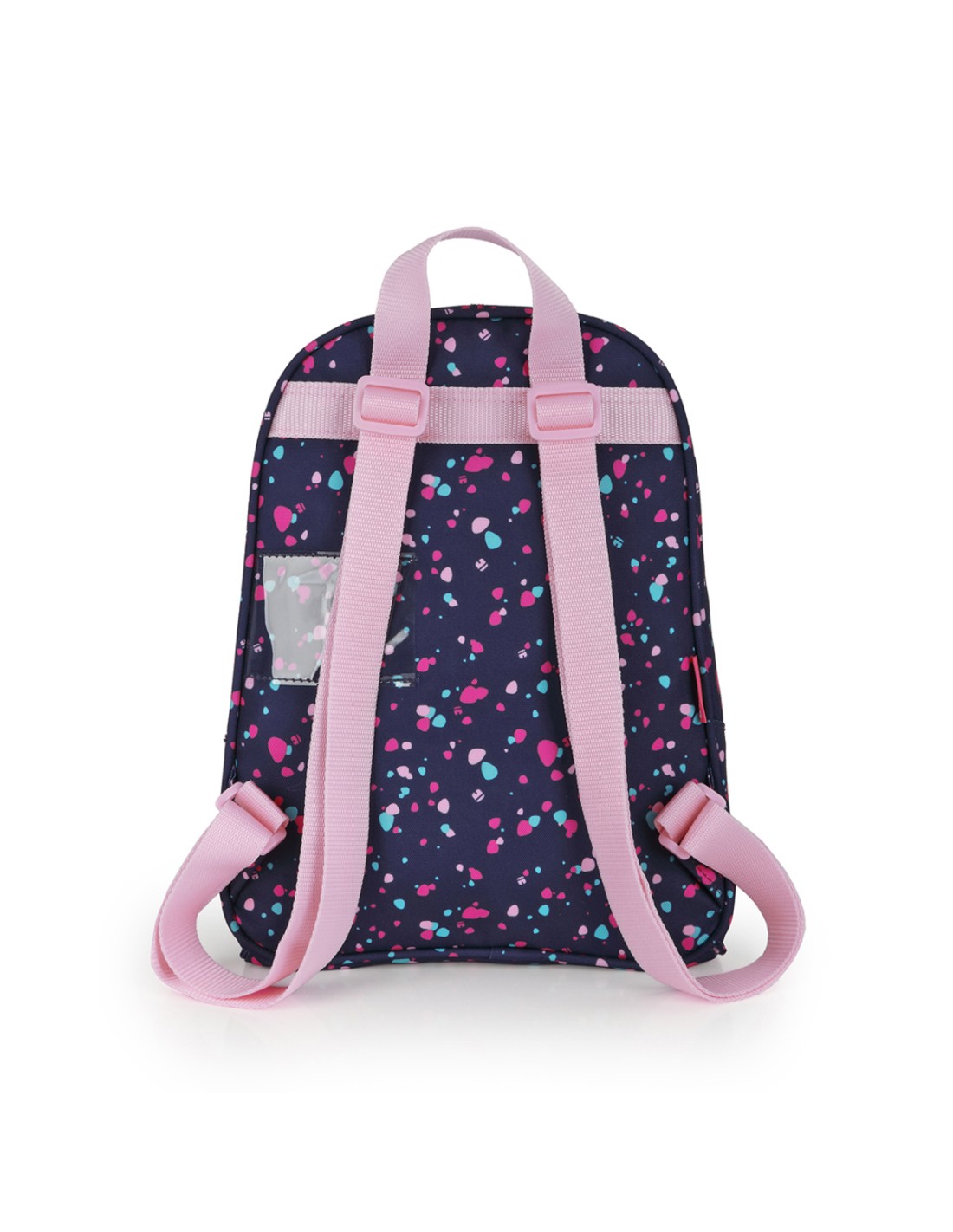 Mochila escolar pequeña. Espalda acolchada para servir de amortiguación con el contenido. Incluye identificador para el nombre. Material resistente al agua. Fabricada con material libre de PVC, con un tejido de alta densidad y mayor calidad. Medidas: 24x30x10 cm