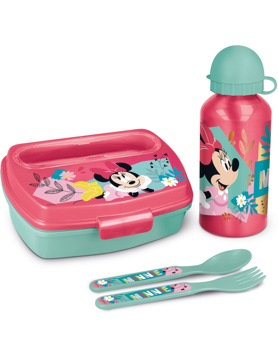 SET DE BOTELLA Y SANDWICHERA + CUBIERTOS MINNIE MOUSE "NAIVE"