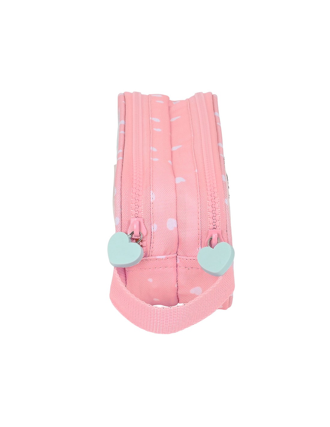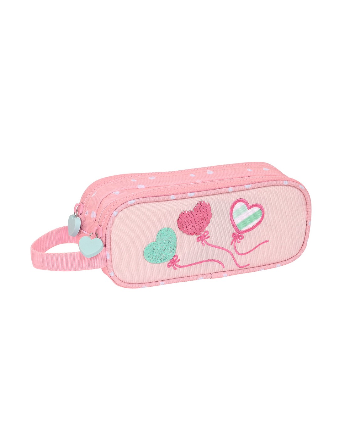 Dos compartimentos separados con cremalleras. Tiradores en los cursores para facilitar su apertura. Asa de mano en la parte lateral. Material Reciclable.
