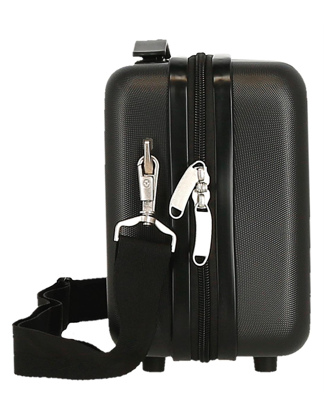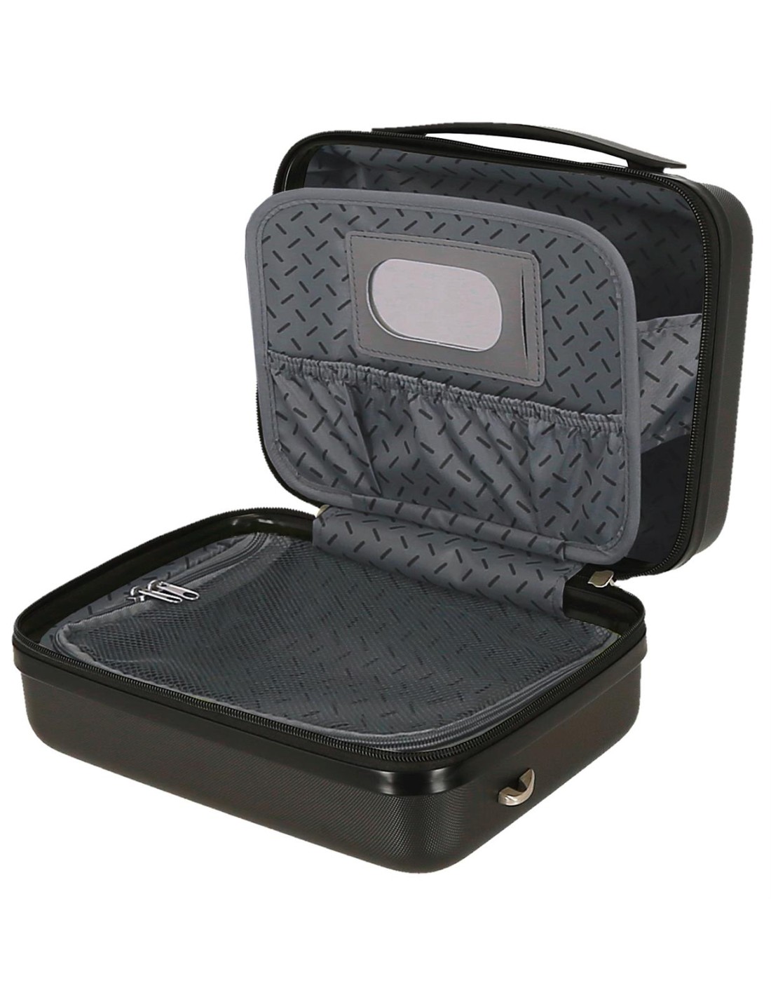 Neceser de 29 cm x 21 cm x 15 cm fabricado en ABS. Contiene dos compartimentos, un bolsillo con cremallera y un bolsillo con goma elástica para mejorar la organización. Banda trasera para adaptar el neceser al carro o llevarlo enganchado a la maleta. Tiradores de cremallera con agujeros para candado. De Joumma Bags.