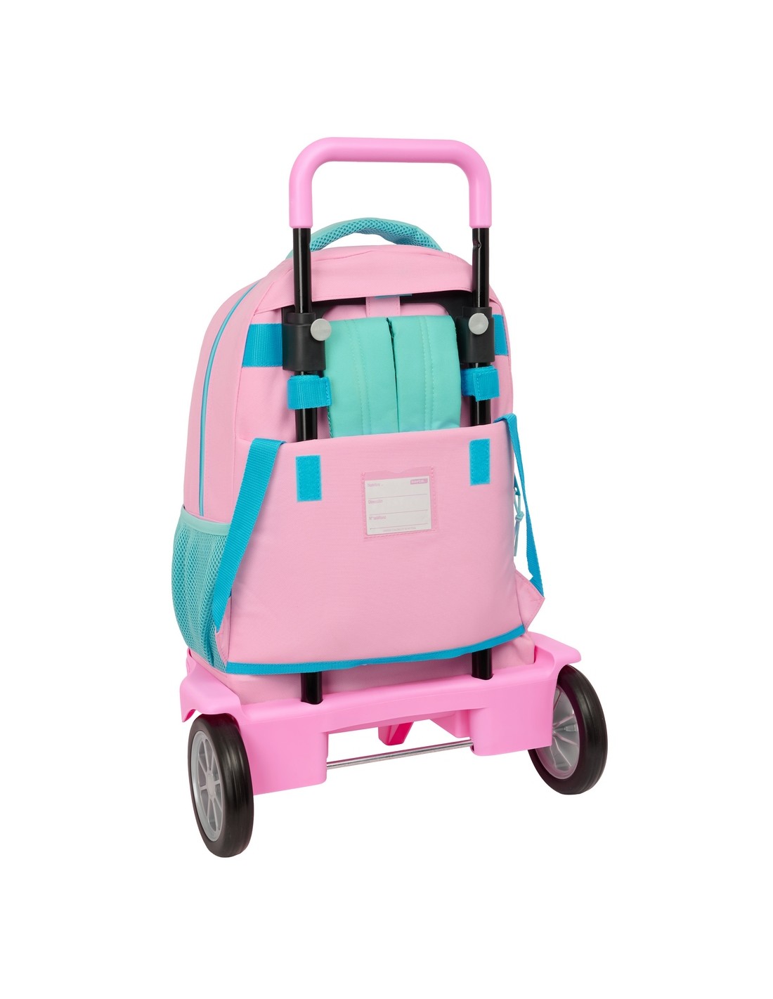 Mochila EXTRAIBLE para poder LAVARLA. Departamento principal de gran capacidad. Bolsillo frontal de gran formato, y Bolsillo lateral portabotella. Doble tirador en cremallera principal para facilitar su apertura. Hombreras y espalda acolchada, Asa de mano acolchada en la parte superior. Tarjeta de identificación personal. Bandeja interior de PVC. Medidas abierto : 93 cm Alto Carro polipropileno,acero pintado,"rueda de XXcm cubierta de goma antivibración ultrasilenciosas. Base reforzada, y Asa extraible con sistema de bloqueo. Fabricado en España.
