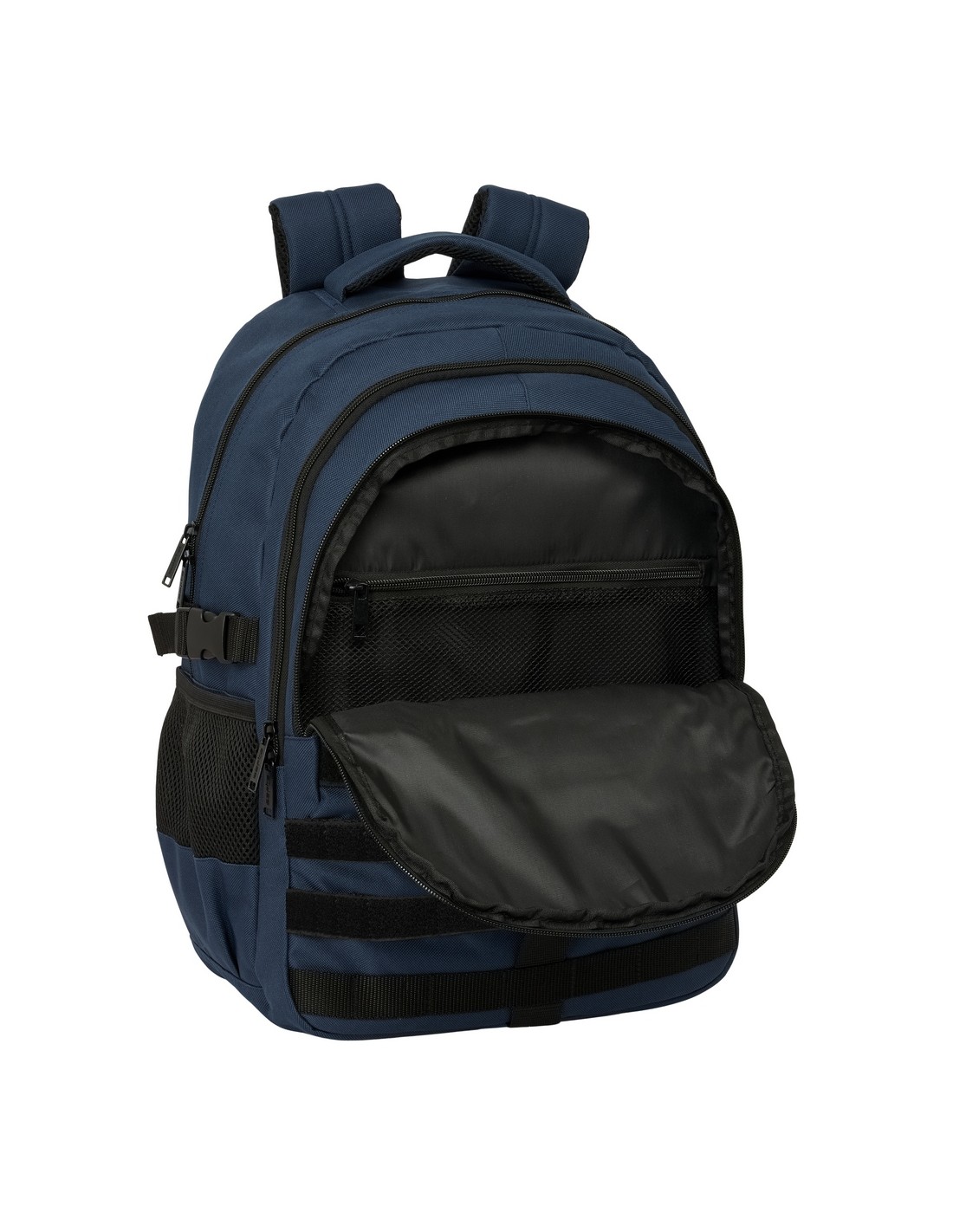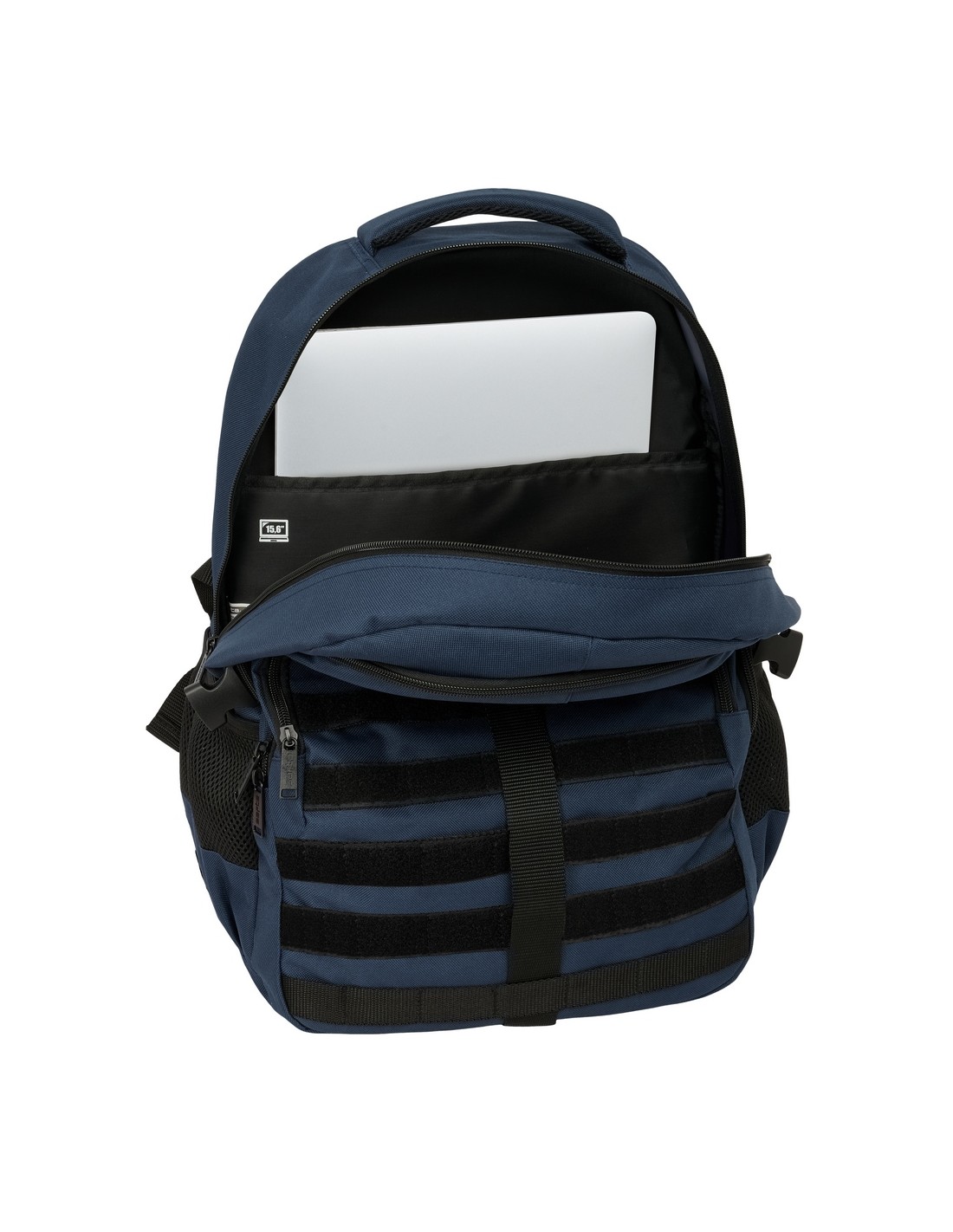 Compartimento principal con bolsillo acolchado para portatil de hasta 15,6'. Compartimento secundario de gran capacidad. Bolsillos interiores con cremallera y de red. Cremalleras de apertura en 2 direcciones para facilitar el acceso. Bolsillo frontal de gran formato con compartimento interior de red con cremallera. Bolsillo trasero oculto antirrobo. Hombreras y espalda ergonómicas y acolchadas antisudor. Cinta trasera adaptable al asa de la maleta. Cintas en la espalda regulables en altura con broches para mantener la mochila acoplada al cuerpo.