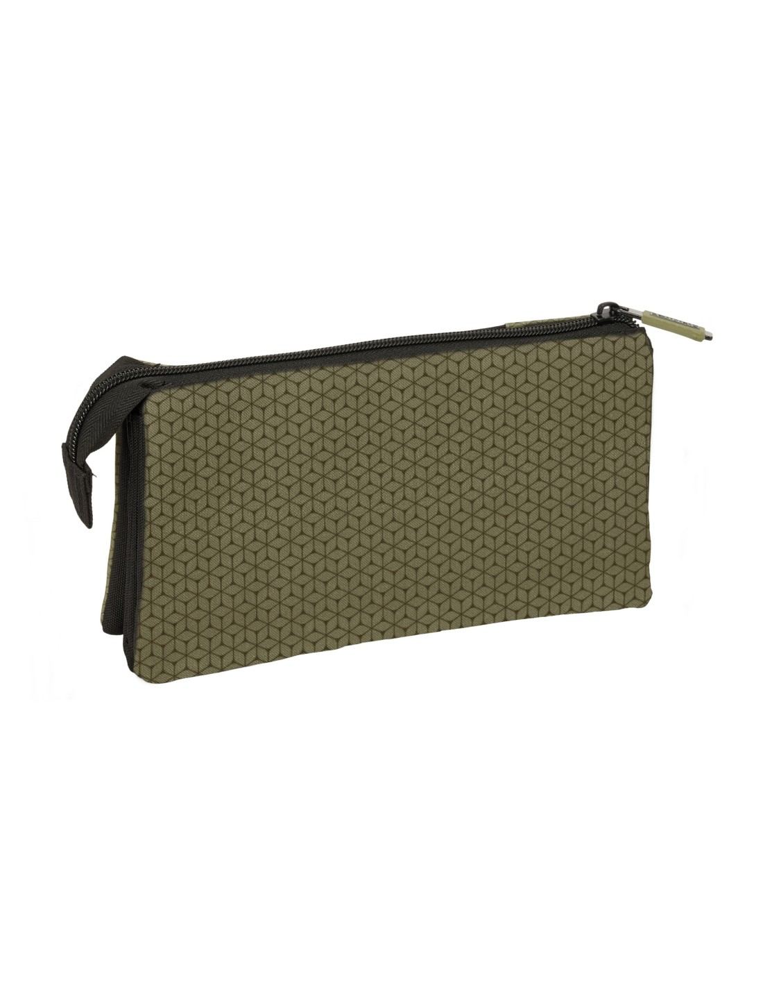 Con 3 compartimentos separados con cremallera. Bolsillo interior central con cremallera.