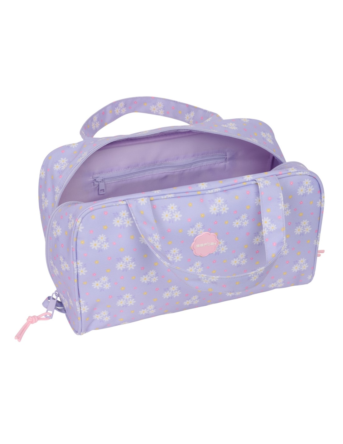 Compartimento forrado con cremallera de gran formato. Organizador interior. Bolsillo interior con cremallera. Doble tirador en compartimento principal para facilitar su apertura. Asas de mano en la parte superior.