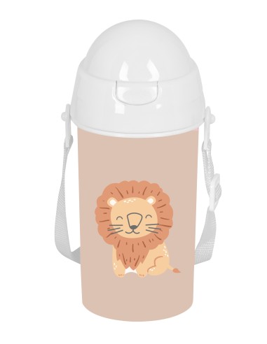BOTELLA 500ml APERTURA AUTOM. CON PAJITA SAFTA PREESCOLAR "LEON"