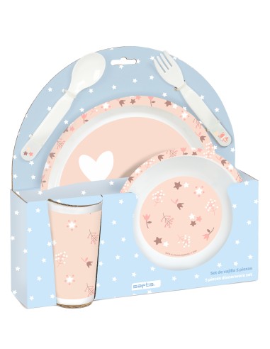 SET DE PLATOS, CUBIERTOS Y VASO SAFTA PREESCOLAR "FLORES"